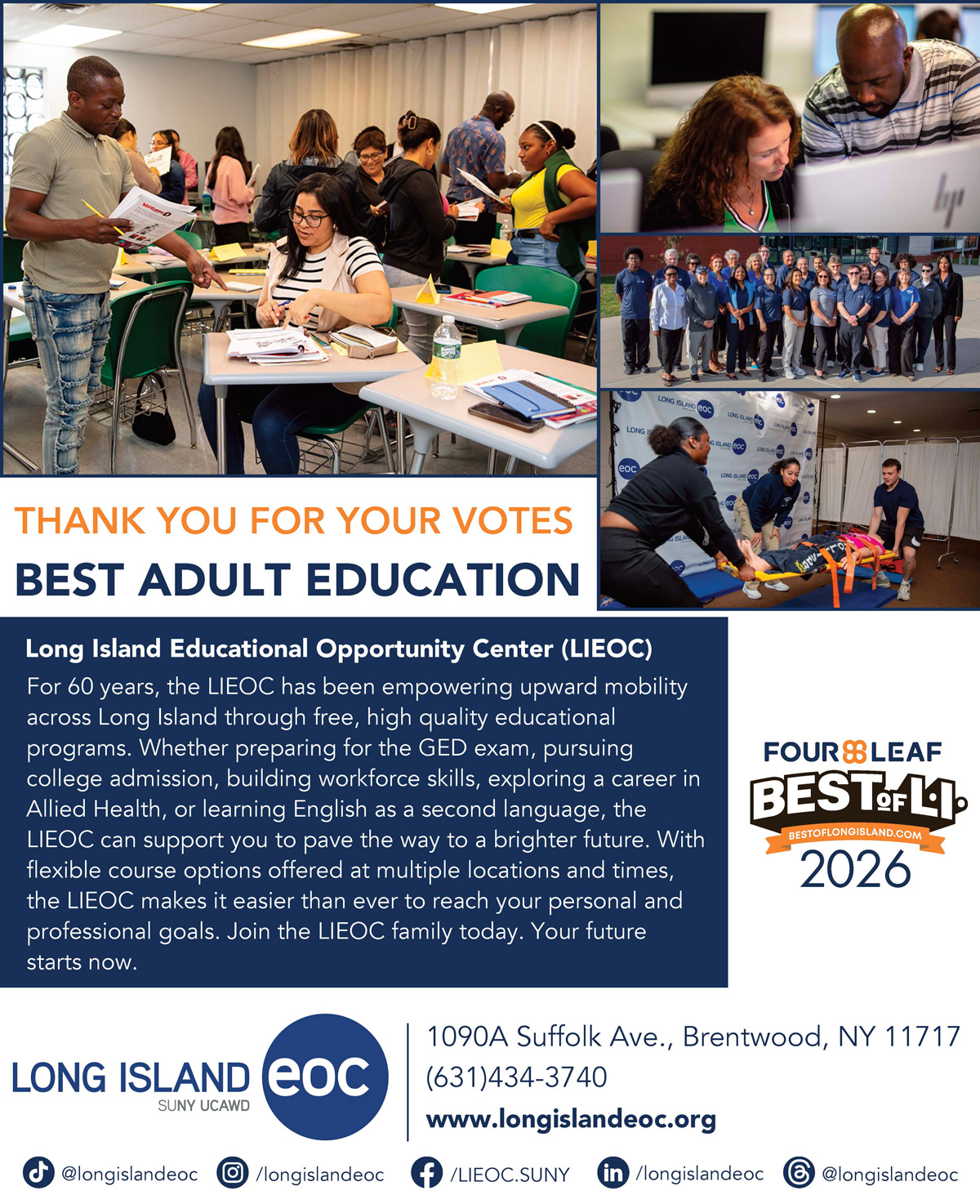 2026: Long Islanders Voted Long Island Educational Opportunity Center (LIEOC) Best Adult Education!